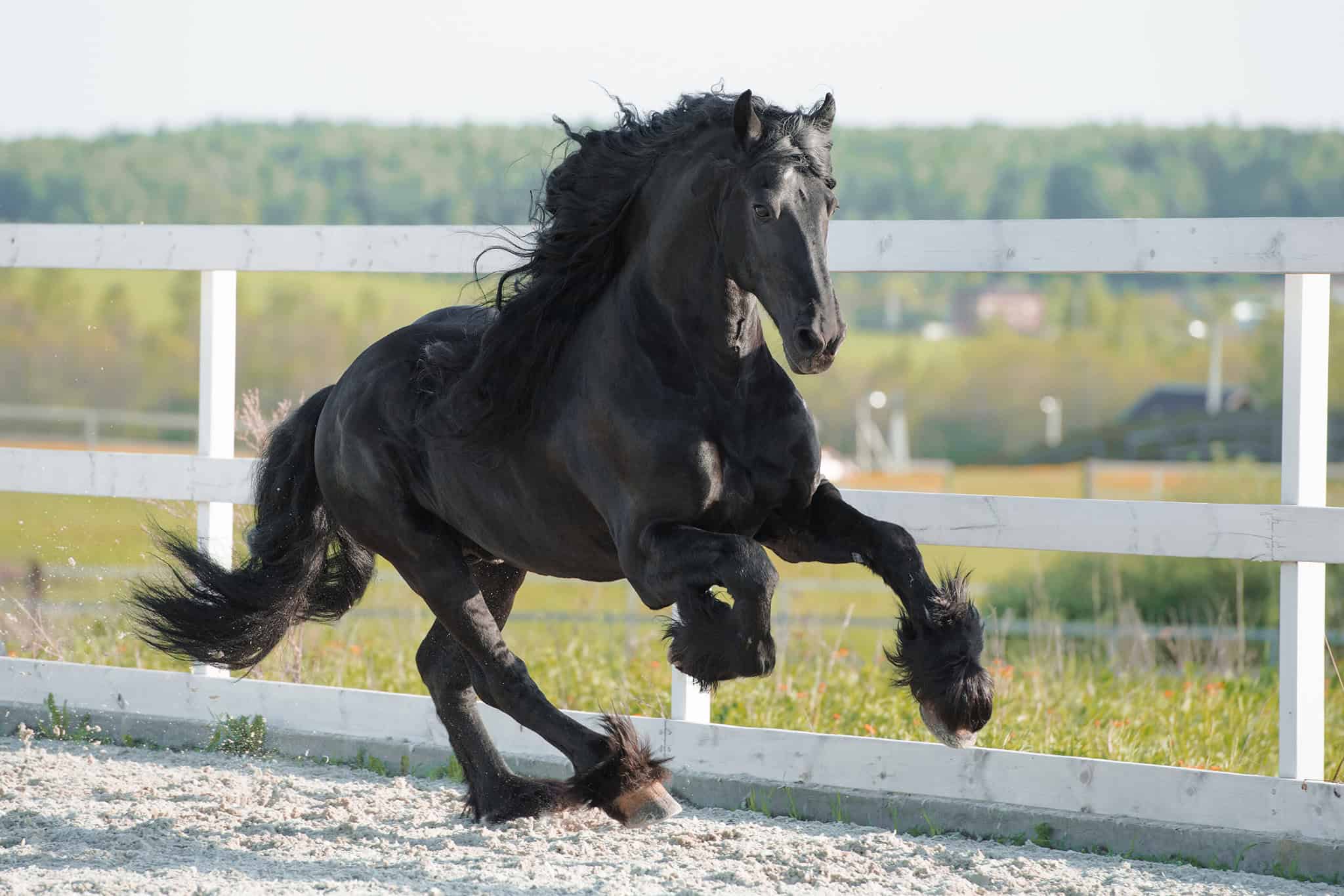 Friesians are known for the long, flowing feathering on their lower legs. While visually striking, feathering can trap moisture, dirt, and microbes, leading to skin issues if not properly maintained.